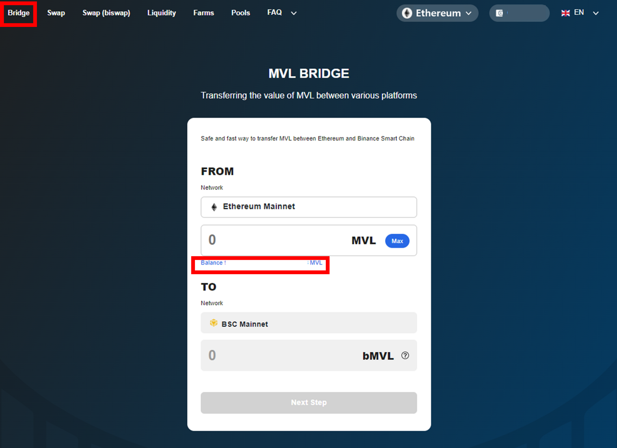 ⑧ You can check your ETH & MVL removed from the LP tokens on the Metamask wallet, and ‘Balance’ and Available bMVL on the [Bridge] tab and [Pools] tab.