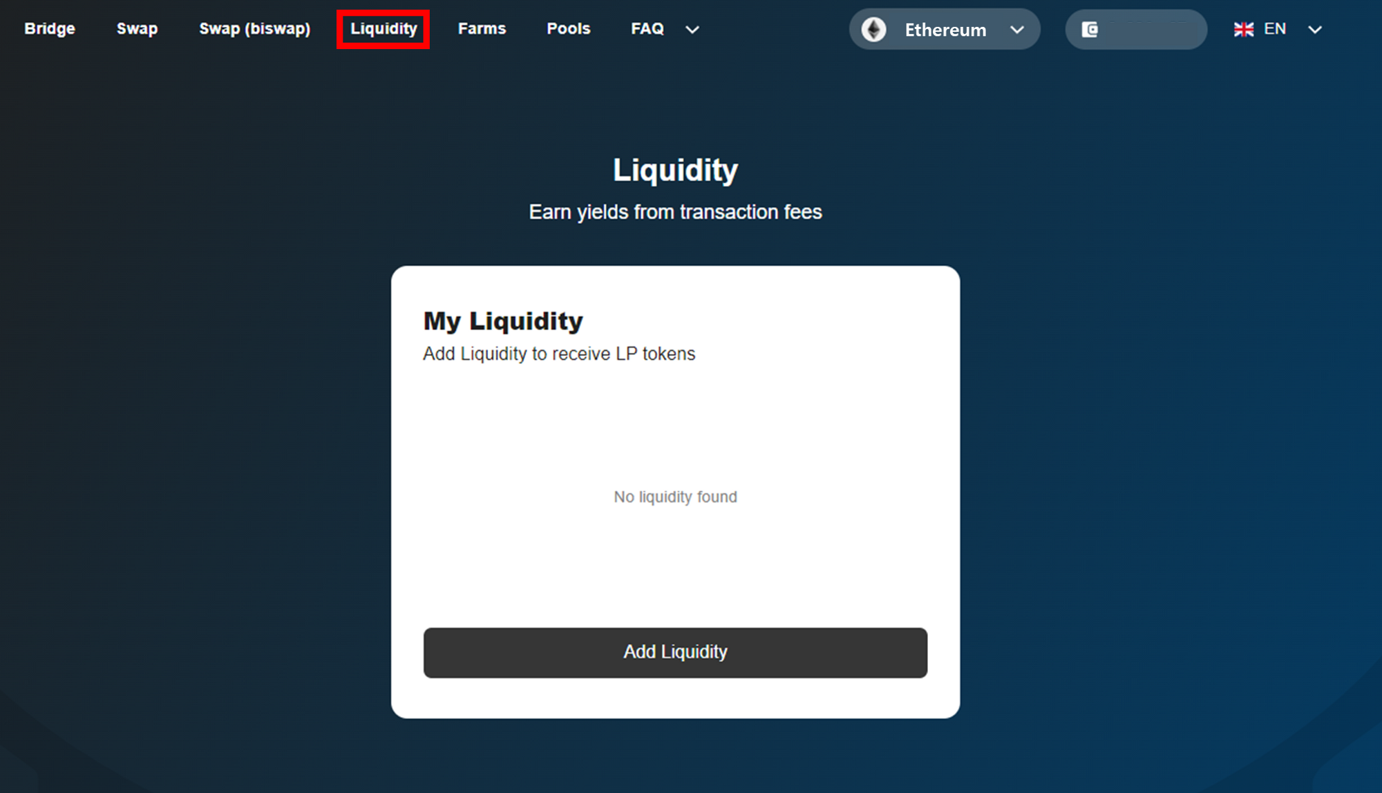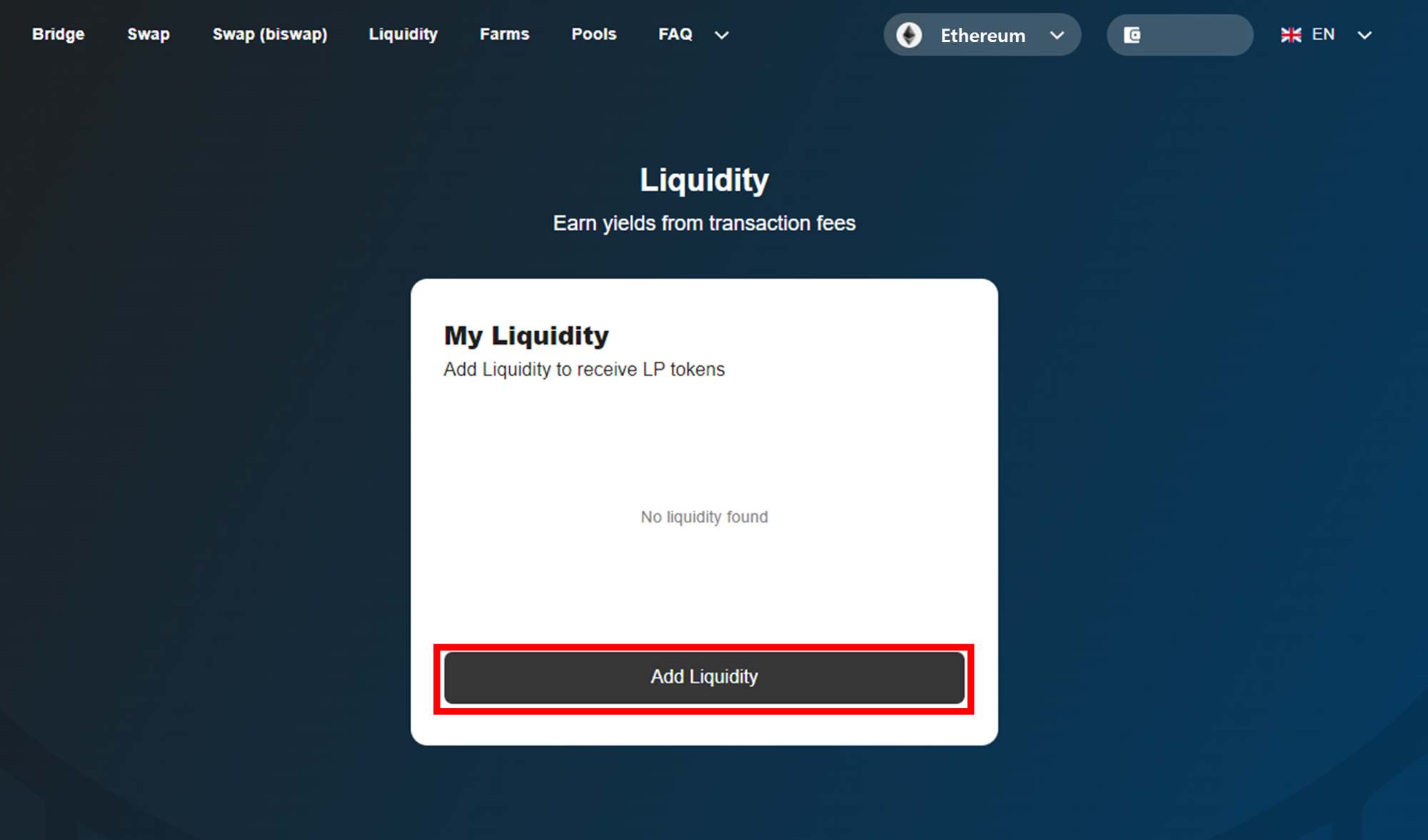 ② Click [Liquidity] or ‘Get LP’ on Farms tab and go to [Liquidity] page.