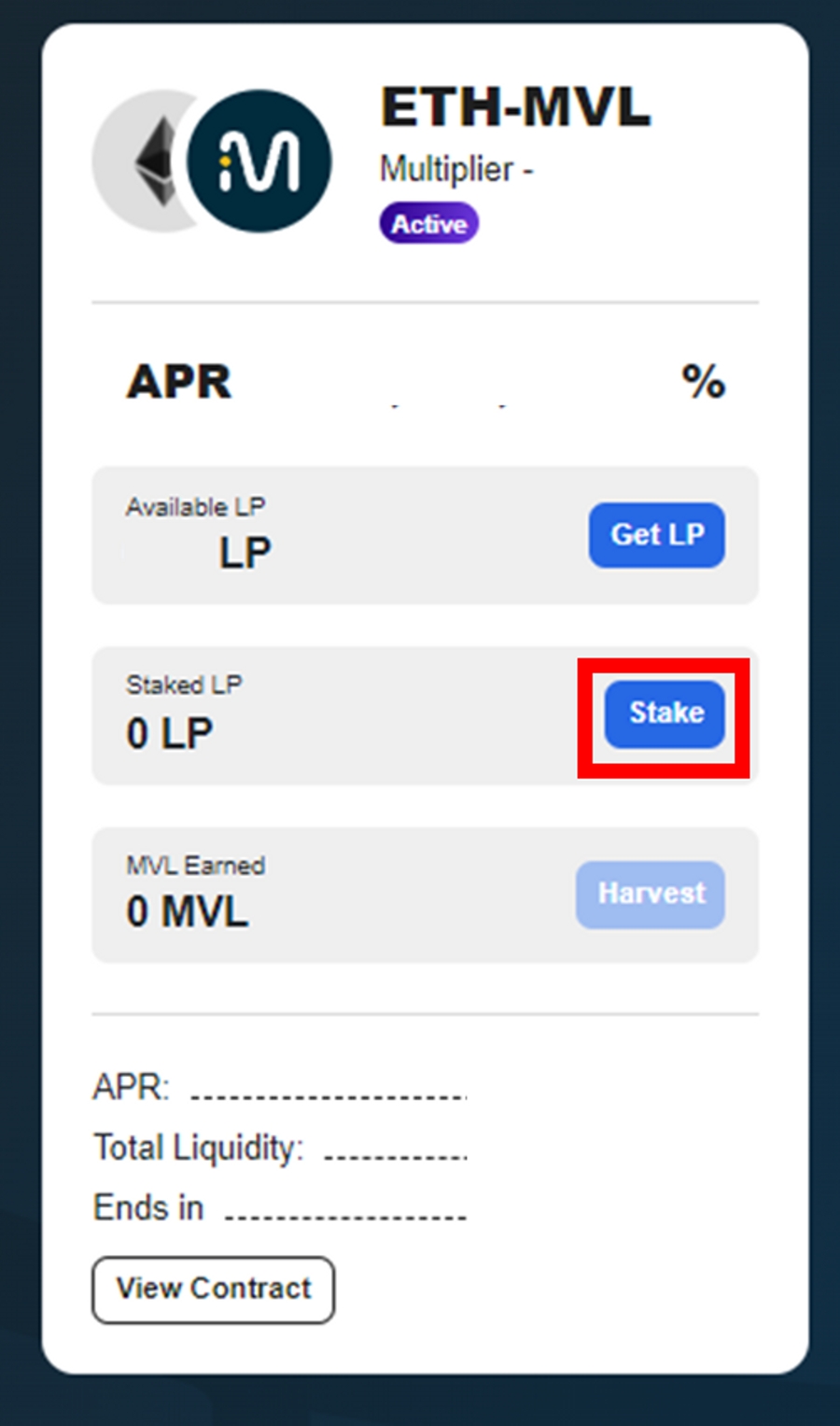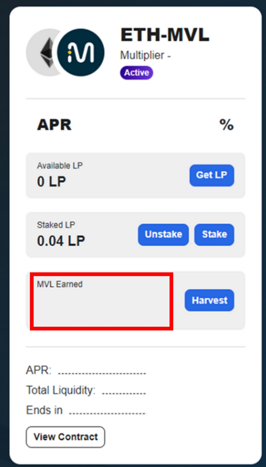 ④ After receiving the principal and rewards, the staked LP is changed to 0 LP and the Earned MVL is changed to 0 MVL.