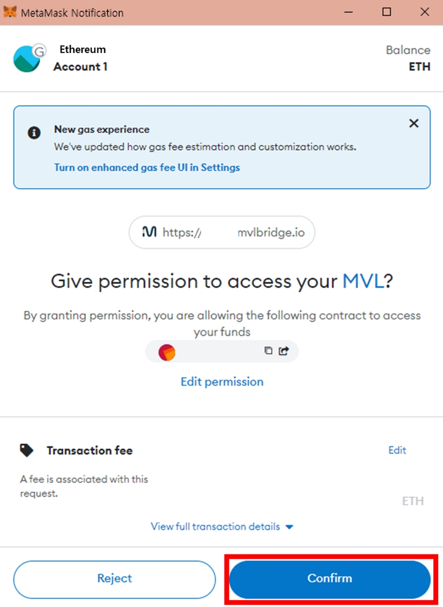 ③ Your wallet will ask you to confirm the action. Check the estimated gas fee then click [Confirm] button.