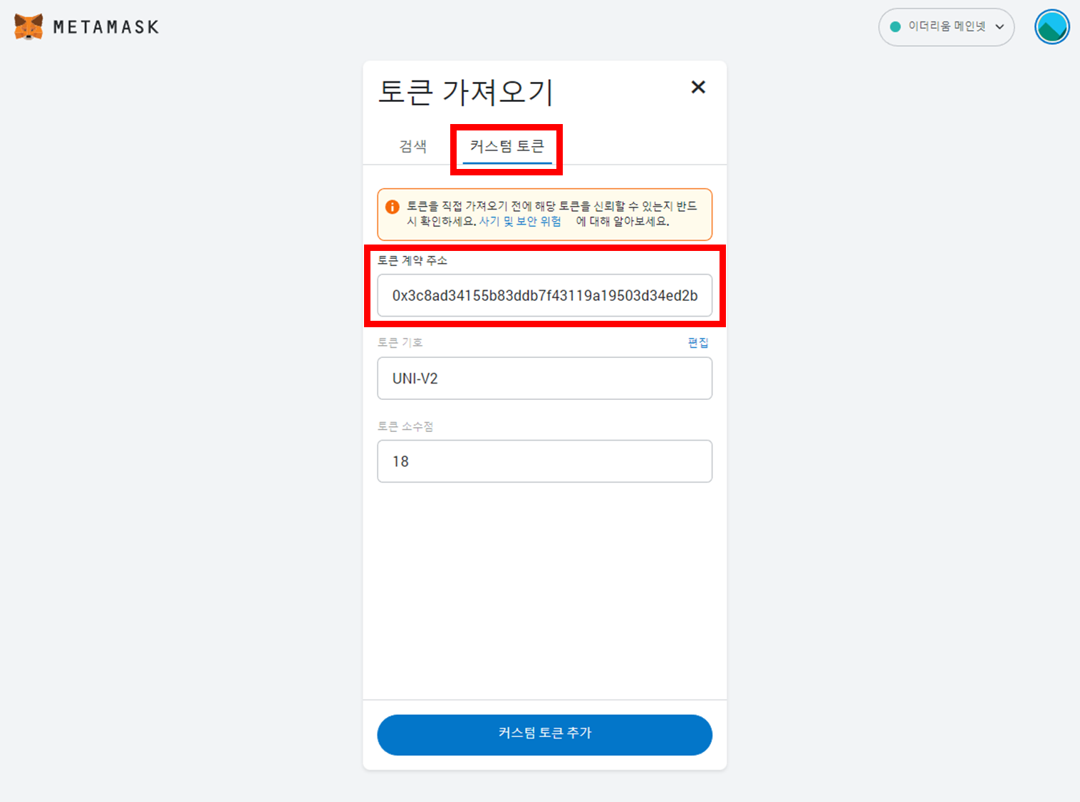 ④ “커스텀 토큰 추가” 버튼을 클릭하세요.