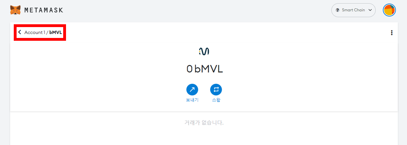⑦ 지갑 메인 화면에서 추가된 bMVL 토큰을 확인할 수 있습니다.