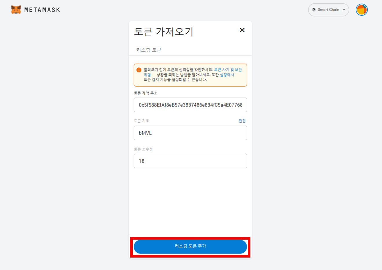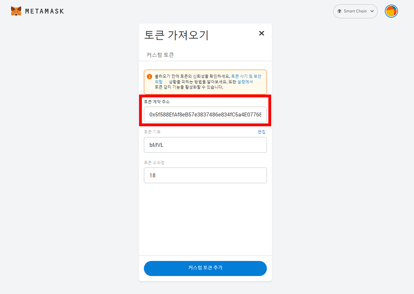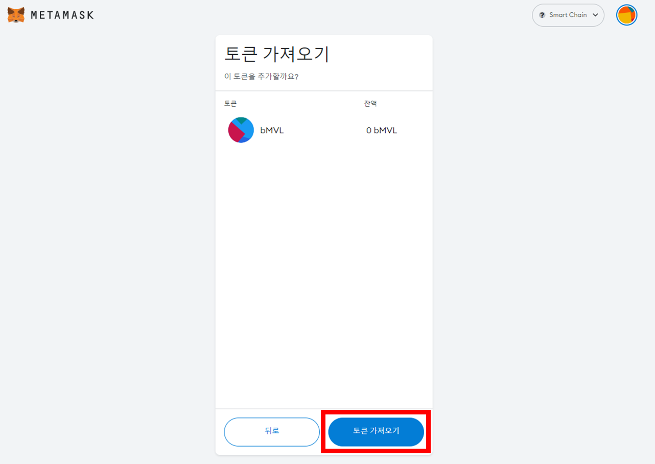 ## **Smart Chain 네트워크에 bMVL 토큰 추가**