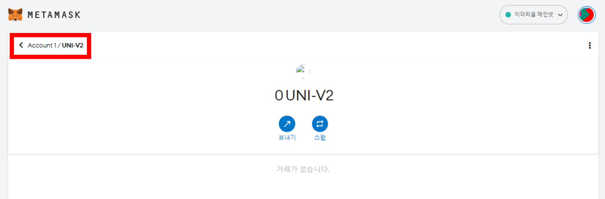 ⑦ 지갑 메인 화면에서 추가된 LP 토큰을 확인할 수 있습니다.