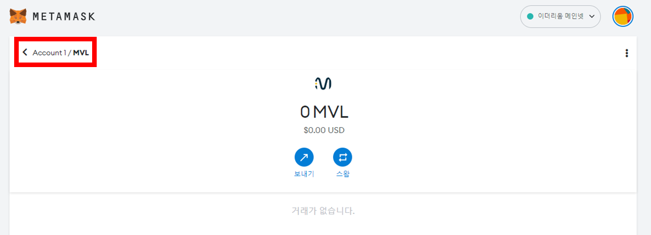 ⑦ 지갑 메인 화면에서 추가된 MVL 토큰을 확인할 수 있습니다.
