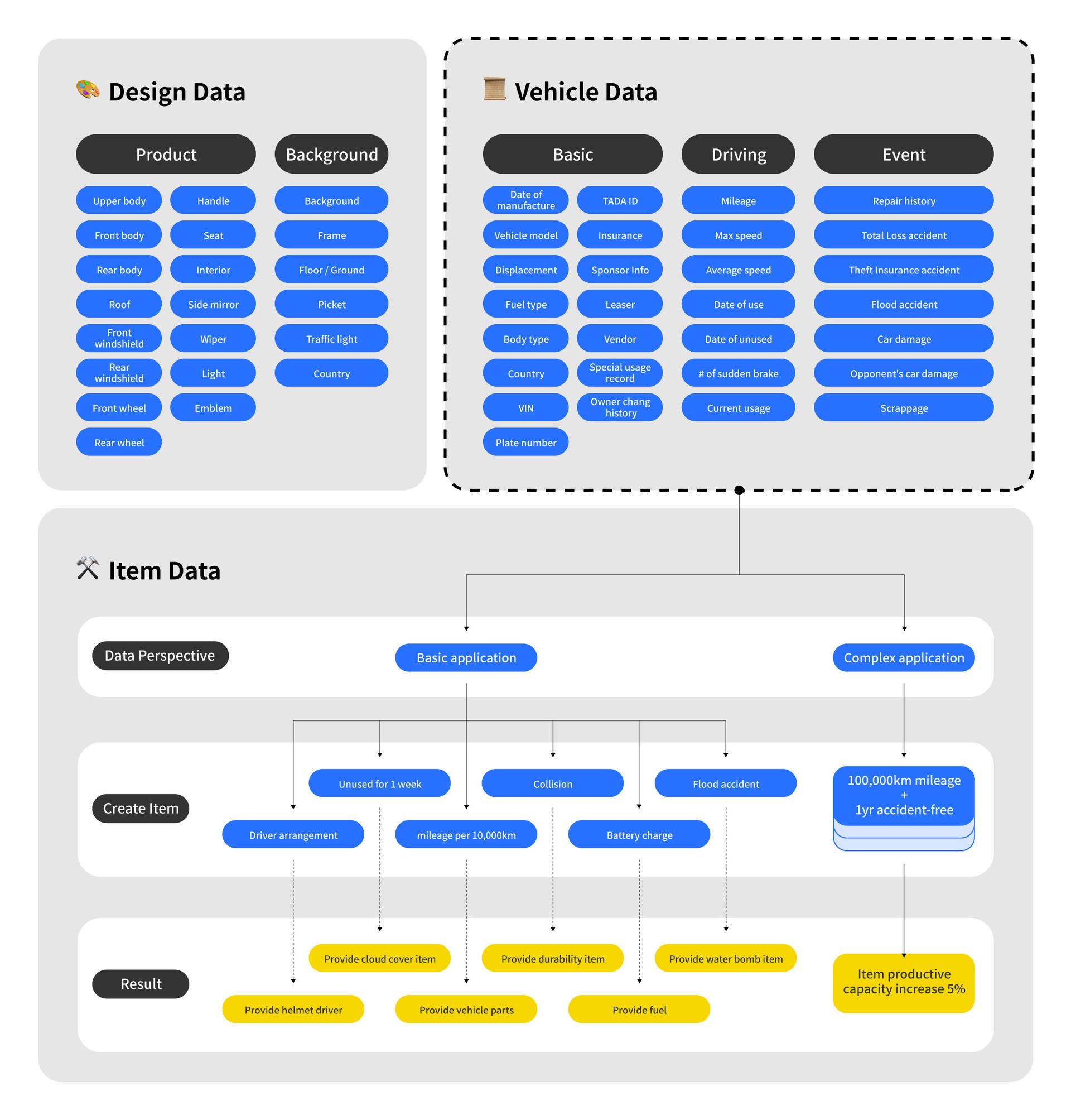 The depreciation process of a real vehicle, which is the unique life cycle of driving, maintenance, accidents, etc., is recorded in the data storage connected to the NFT. The NFTs prove the data ownership and utilization rights of real vehicles, and the life cycle data of real vehicles provide items that can be utilized in NFTs and linked services to maximize the value of NFT.