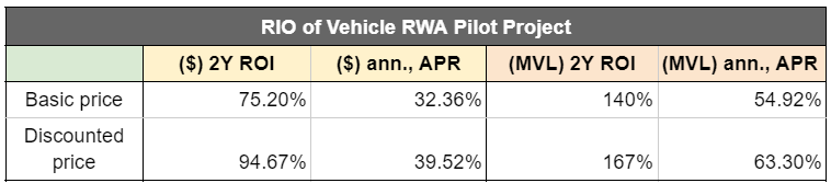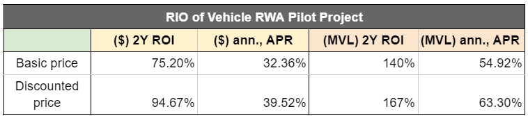 Accordingly, the final return on investment (ROI) for MVL's vehicle RWA, DEMO NFT, is as follows: