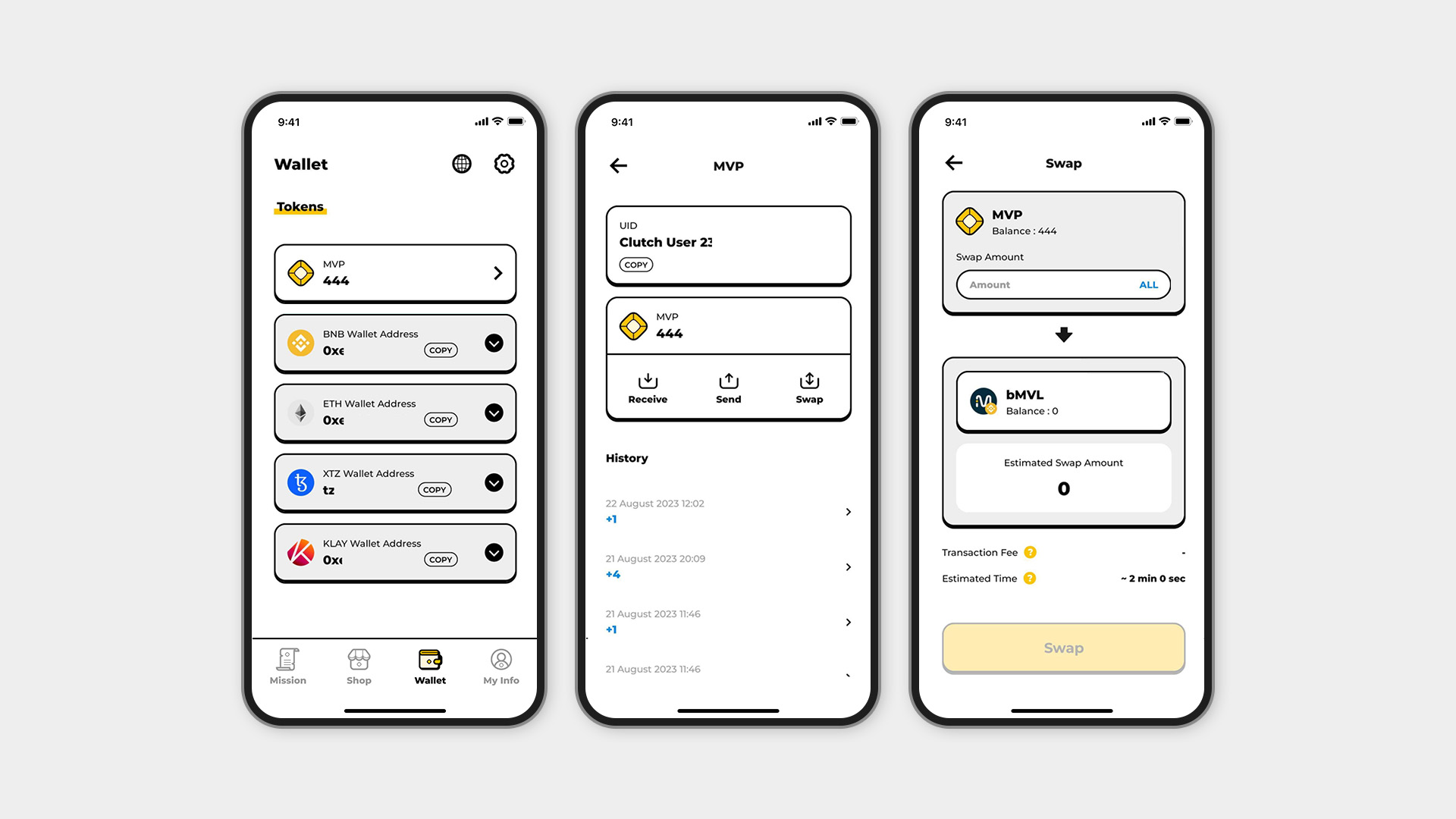 Earning MVP points is achievable through daily mission participation within Clutch. Additionally, users who connect their TADA account with Clutch receive MVP points as rewards. At any given time, users have the flexibility to exchange these accumulated MVPs at a 1:1 rate for MVL tokens.