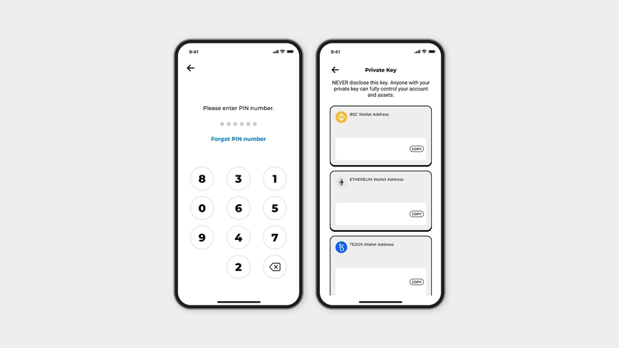 Clutch employs a security system with three essential elements: a private key, a PIN, and a seed phrase. The PIN is a 6-digit password that enhances the accessibility of Clutch. The private key is securely stored on mobile phones, providing users with access to their wallets. This key is composed of random numbers and letters, ensuring strong security for users' wallets. In case users ever lose their private key, they can safely recover their wallet using the seed phrase.