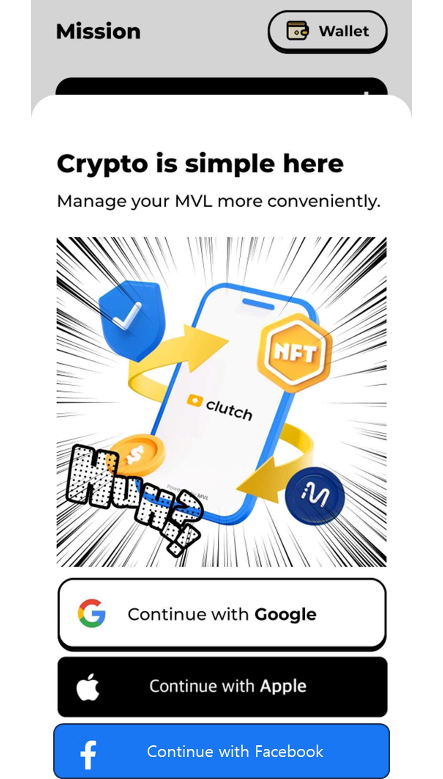 - After signing up through social login, users will gain access to Clutch's Web2 features. With these, users can enjoy various benefits, such as earning MVP points through daily missions and mini-games, connecting with TADA, and receiving rewards for participating in MVL's ecosystem.