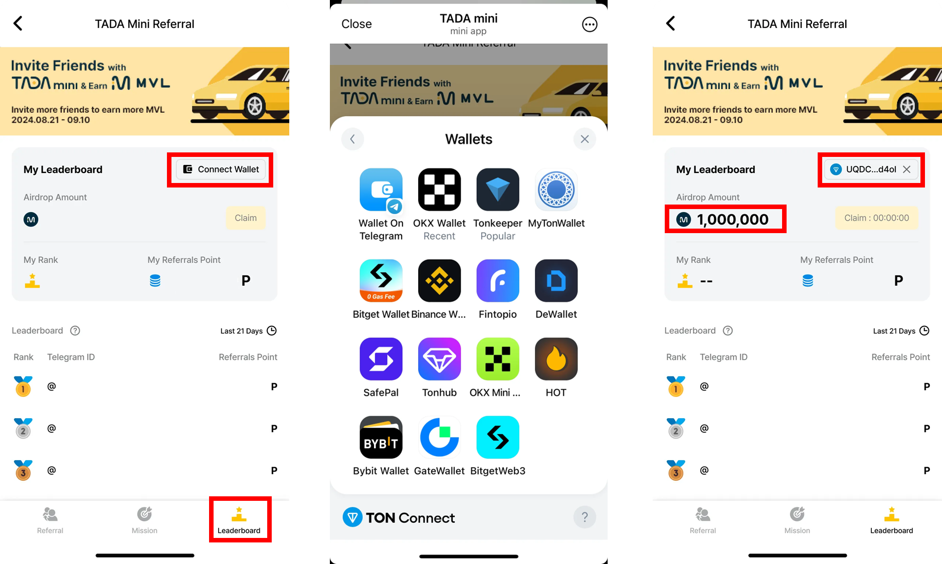 The TADA mini Referral Campaign has successfully concluded on October 25th, 2024. This guide explains how to claim rewards.