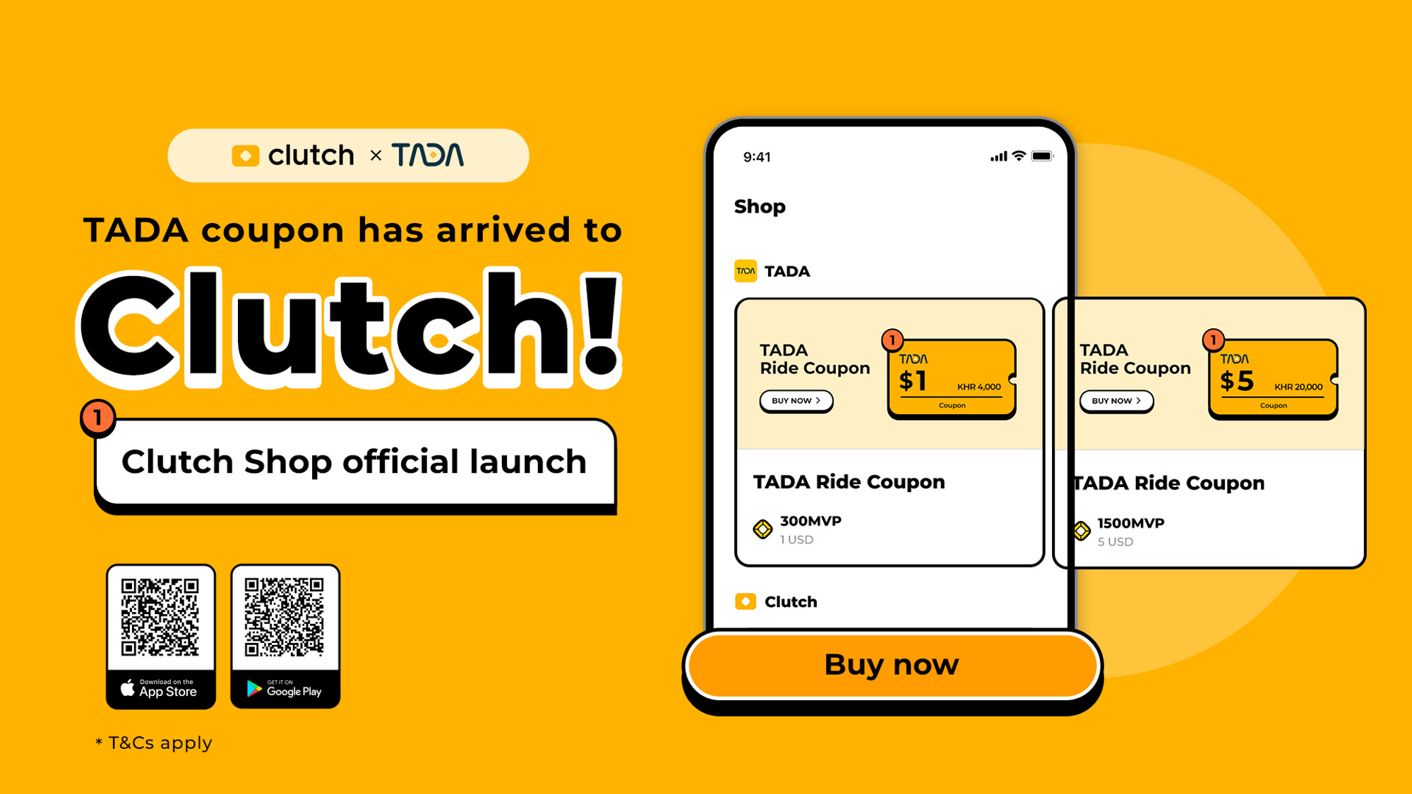 Purchasing TADA ride coupons is available now through either exchanging MVL tokens for MVP or earning MVP through mission completion in Clutch. TADA ride coupons are presently offered in values that vary from $1 to $5. Once purchased, the coupons are instantly redeemable on TADA app for ride-hailing services in Cambodia.